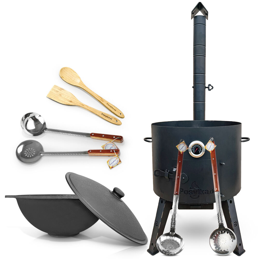 Учаг Davrmetall с разборным дымоходом предназначен для безопасного, быстрого и комфортного приготовления пищи на открытом воздухе в казане или походном котле.